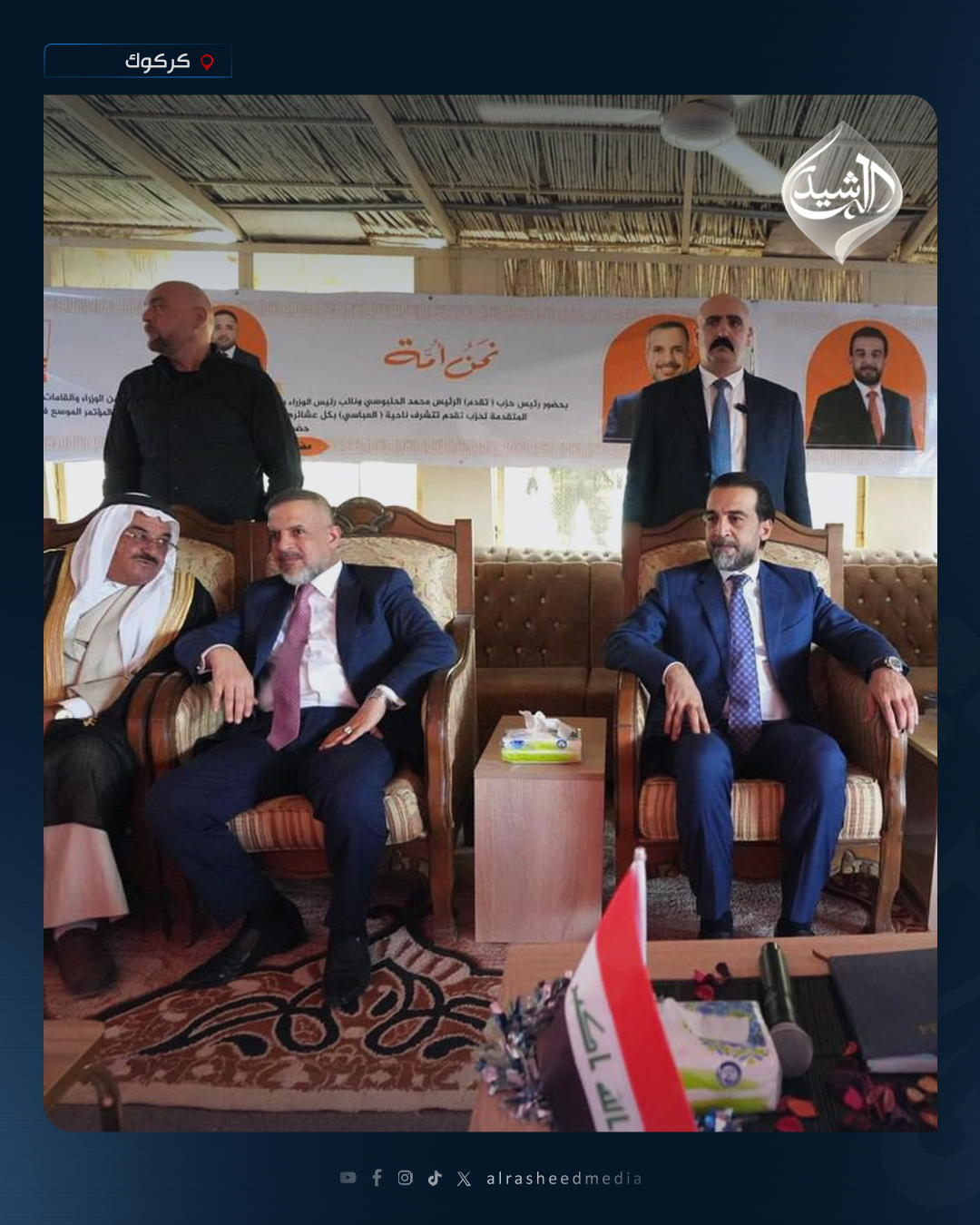 رئيس حزب تقدم الرئيس محمد الحلبوسي، يرافقه نائب رئيس الحزب محمد تميم نائب رئيس مجلس الوزراء وزير التخطيط وعدد من قيادات الحزب، يزورون مضيف الشيخ طيب القفطان/ قبيلة الجبور في ناحية العباسي؛ لدعم مرشَّح الحزب في كركوك صباح القفطان.