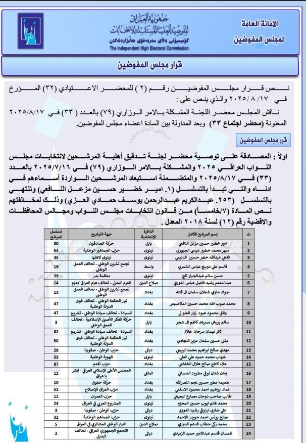 سياسة"الرشيد" تنشر اسماء المستبعدين من السباق الانتخابي قبل 4 أشهر 21 مشاهدات شارك المفوضية: نحتاج الى قرابة 250 الف موظف اقتراع لإجراء الانتخابات المقبلة وفقًا للمعايير الدولية المفوضية تعلن استبعاد 290 مرشحاً من الانتخابات المقبلة المفوضية تعلن استبعاد 290 مرشحاً من الانتخابات المقبلة المفوضية تعلن استبعاد 290 مرشحاً من الانتخابات المقبلة المفوضية تعلن استبعاد 290 مرشحاً من الانتخابات المقبلة المفوضية تعلن استبعاد 290 مرشحاً من الانتخابات المقبلة المفوضية تعلن استبعاد 290 مرشحاً من الانتخابات المقبلة المفوضية تعلن استبعاد 290 مرشحاً من الانتخابات المقبلة الوسومالانتخاباتقد يهمك أيضا رياضة أخطاء كارثية وكرات ساخنة.. كوابيس الماضي تحاصر قرعة كأس العالم قبل 6 دقائق 1 مشاهدة عربي ودولي حماس: وافقنا على تشكيل لجنة تكنوقراط لحكم غزة قبل 17 دقيقة 4 مشاهدات رياضة عرض سعودي ضخم لضم رافينيا يربك حسابات برشلونة قبل 21 دقيقة 4 مشاهدات محليات الصحة: نصف النزلاء في مستشفى الرشاد متماثلون للشفاء لكن ذويهم يرفضون استلامهم قبل 47 دقيقة 8 مشاهدات عربي ودولي مقربون يكشفون: بشار الأسد تأقلم واستسلم للمنفى وشقيقه ماهر لم يتقبل فكرة فقدان السلطة قبل 50 دقيقة 9 مشاهدات