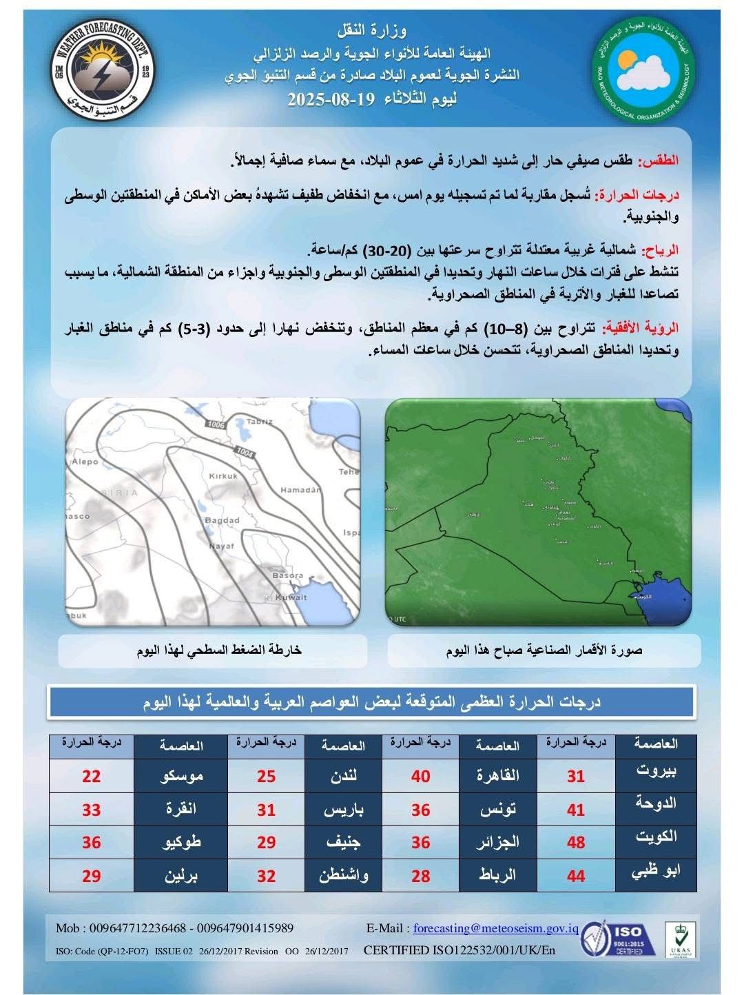طقس العراق.. درجات حرارة أربعينية وتصاعد الغبار خلال الأيام المقبلة قبل 4 أشهر شارك طقس العراق.. درجات حرارة أربعينية وتصاعد الغبار خلال الأيام المقبلة