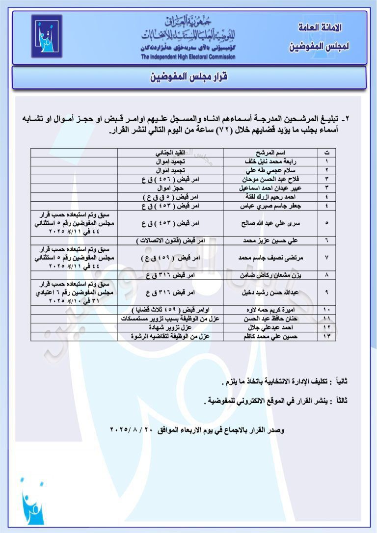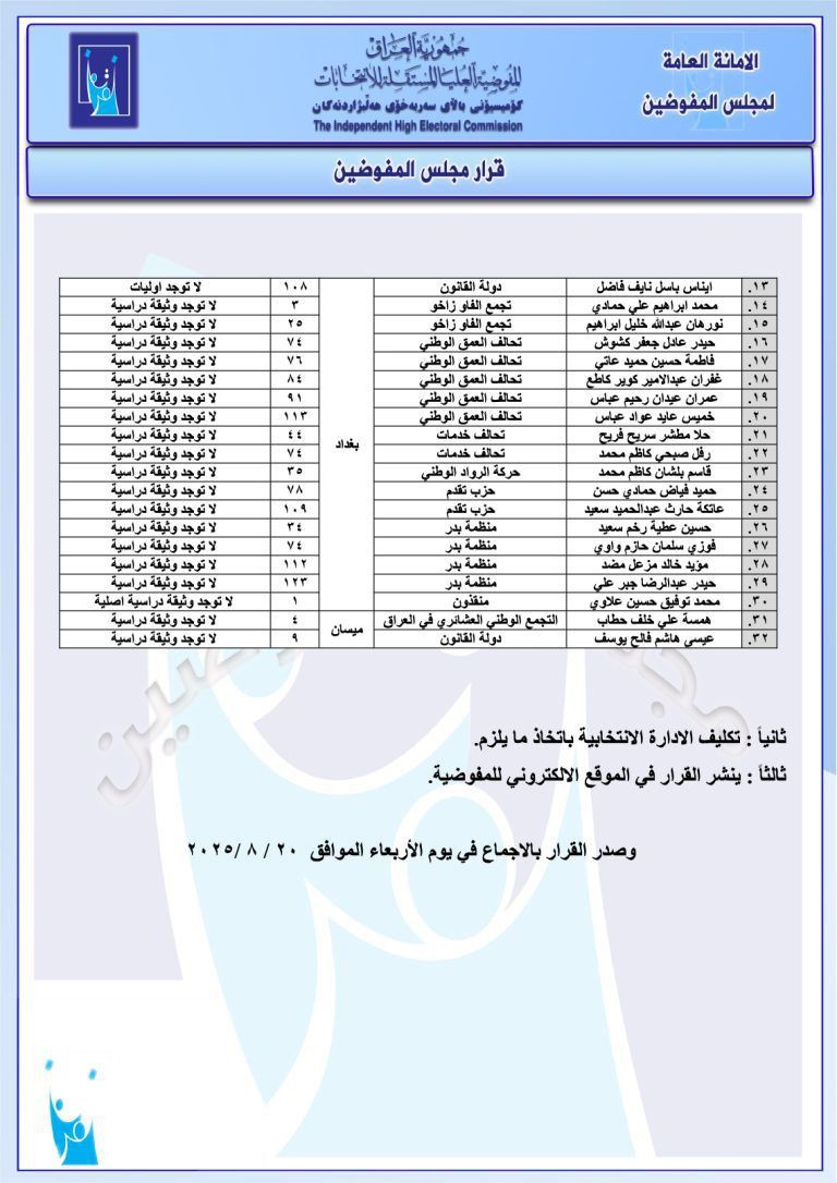 محلياتبالوثائق.. مفوضية الانتخابات تقرر حذف واستبعاد وإبلاغ عدد من المرشحين قبل 6 أشهر 33 مشاهدات شارك مفوضية بالوثائق.. مفوضية الانتخابات تقرر حذف واستبعاد وإبلاغ عدد من المرشحين بالوثائق.. مفوضية الانتخابات تقرر حذف واستبعاد وإبلاغ عدد من المرشحين بالوثائق.. مفوضية الانتخابات تقرر حذف واستبعاد وإبلاغ عدد من المرشحين بالوثائق.. مفوضية الانتخابات تقرر حذف واستبعاد وإبلاغ عدد من المرشحين الوسومبالوثائقمفوضية الانتخاباتقد يهمك أيضا الحكم الرابع التحكيم في مهب الريح.. إيقاف رسمي واستقالة لم تكتمل قبل 7 ساعات 12 مشاهدات الاخبار العاجلة إدارة الدولة يؤكد دعمه للإجراءات القانونية والقضائية بشأن سجناء داعش المنقولين من سوريا قبل 7 ساعات 23 مشاهدات سياسة ائتلاف إدارة الدولة يشدد على ضرورة مساندة الإصلاحات الاقتصادية التي تبنتها الحكومة قبل 7 ساعات 12 مشاهدات سياسة ائتلاف ادارة الدولة يعرب عن ترحيبه ودعمه للمفاوضات بين الولايات المتحدة وايران قبل 7 ساعات 11 مشاهدات مع ياسر عامر المالكي عقدة الاطار! قبل 7 ساعات 14 مشاهدات