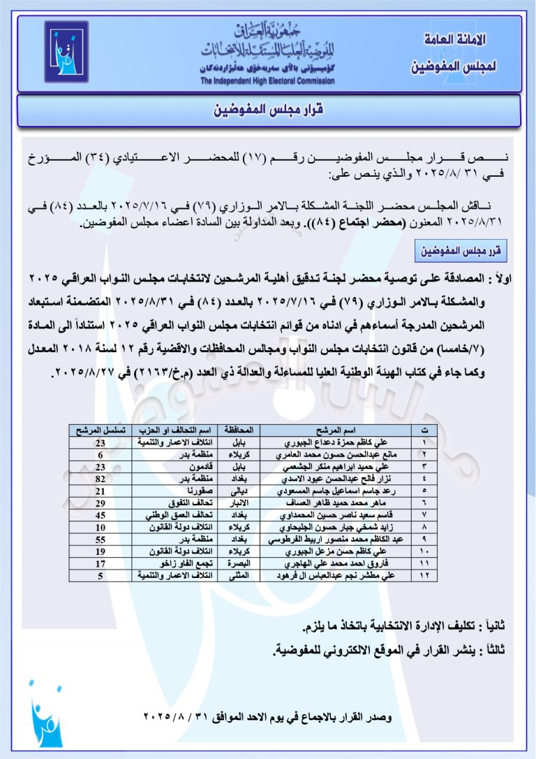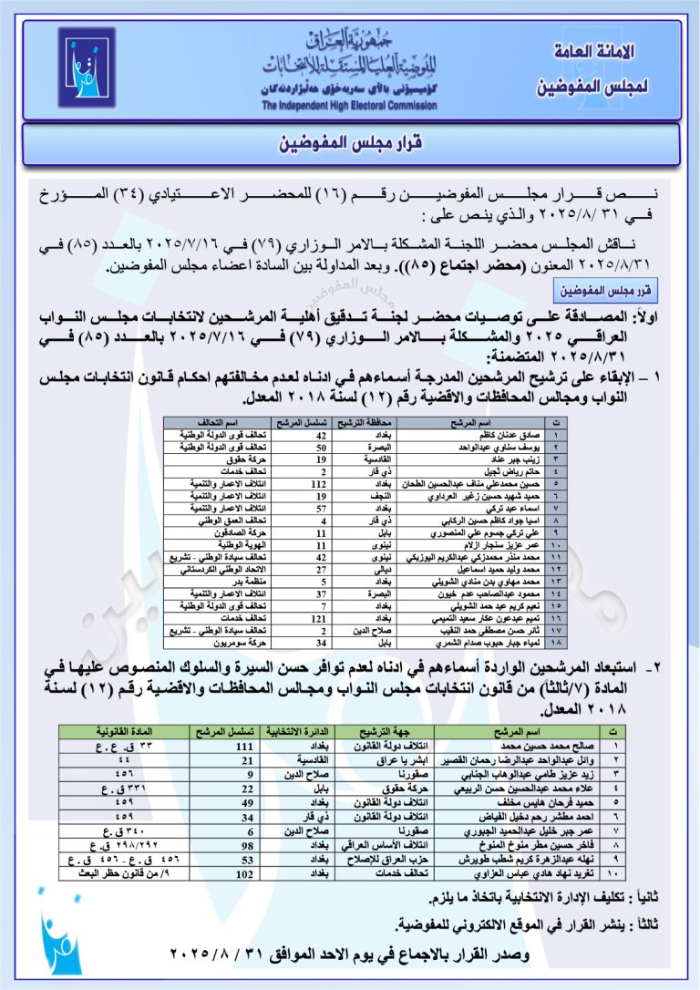 محلياتالمفوضية تستبعد وجبة جديدة من المرشحين وتعيد آخرين إلى السباق الانتخابي قبل 3 أشهر 31 مشاهدات شارك المفوضية المفوضية تستبعد وجبة جديدة من المرشحين وتعيد آخرين إلى السباق الانتخابي المفوضية تستبعد وجبة جديدة من المرشحين وتعيد آخرين إلى السباق الانتخابي المفوضية تستبعد وجبة جديدة من المرشحين وتعيد آخرين إلى السباق الانتخابي المفوضية تستبعد وجبة جديدة من المرشحين وتعيد آخرين إلى السباق الانتخابي المفوضية تستبعد وجبة جديدة من المرشحين وتعيد آخرين إلى السباق الانتخابي الوسومالمفوضيةقد يهمك أيضا علوم وتكنولوجيا خلل فني يوقف عمل منصات ومواقع عالمية على الإنترنت قبل 9 دقائق 2 مشاهدات عربي ودولي نعيم قاسم: ننتظر من الحكومة اللبنانية أن تبين لنا بطولاتها بإيقاف العدوان وتحرير الأسرى والإعمار قبل 17 دقيقة 4 مشاهدات رياضة أخطاء كارثية وكرات ساخنة.. كوابيس الماضي تحاصر قرعة كأس العالم قبل 28 دقيقة 4 مشاهدات عربي ودولي حماس: وافقنا على تشكيل لجنة تكنوقراط لحكم غزة قبل 39 دقيقة 8 مشاهدات رياضة عرض سعودي ضخم لضم رافينيا يربك حسابات برشلونة قبل 44 دقيقة 5 مشاهدات