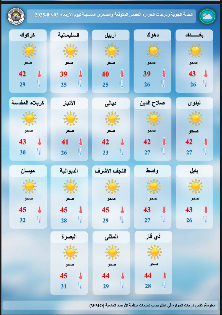 طقس العراق.. انخفاض بالحرارة وتصاعد الغبار خلال الأيام المقبلة قبل 3 أشهر شارك طقس العراق.. انخفاض بالحرارة وتصاعد الغبار خلال الأيام المقبلة