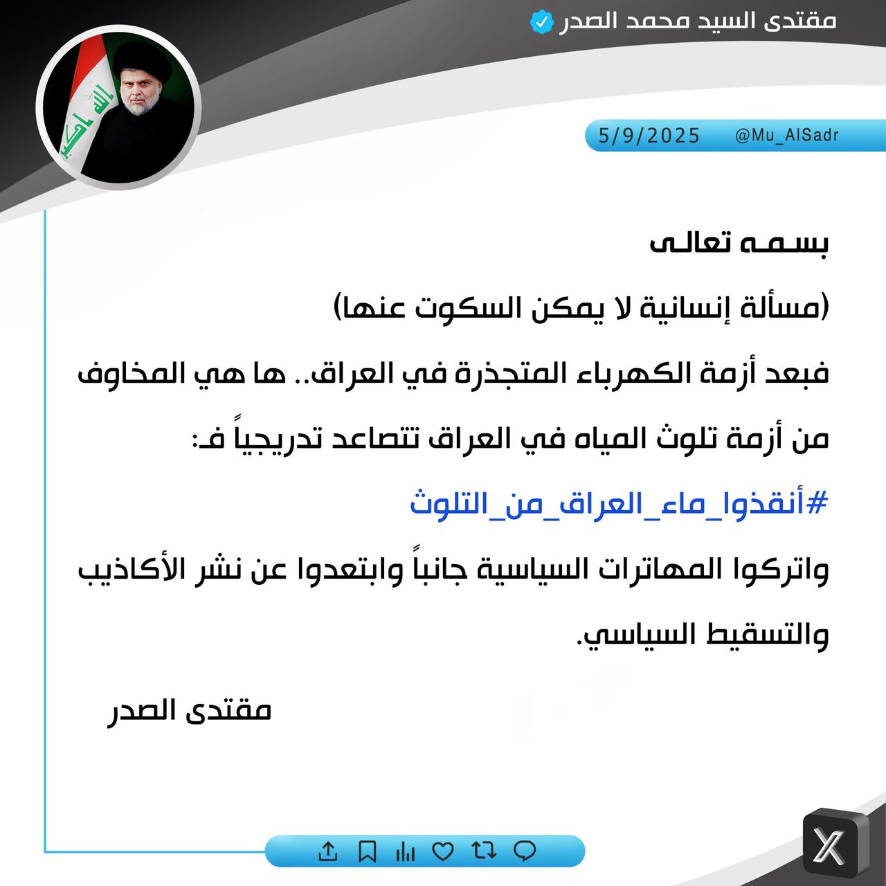 سياسةالسيد الصدر: أنقذوا ماء العراق من التلوث واتركوا المهاترات السياسية جانباً قبل 3 أشهر 23 مشاهدات شارك السيد الصدر يوجه باقامة صلاة جمعة موحدة بمناسبة عيد الغديرالسيد الصدر: أنقذوا ماء العراق من التلوث واتركوا المهاترات السياسية جانباً الوسومالتلوثالسيد الصدرالعراققد يهمك أيضا عربي ودولي الإعلام الإسرائيلي بعد مقتل أبو شباب: "حماس" اخترقت مناطق سيطرتنا قبل 16 دقيقة 4 مشاهدات عربي ودولي الولايات المتحدة تقلص مدة تصاريح عمل المهاجرين إلى 18 شهرا قبل 31 دقيقة 6 مشاهدات عربي ودولي تفاصيل جديدة.. غارة أميركية تقتل عميلا سرياً في سوريا بدل قيادي داعشي قبل 41 دقيقة 7 مشاهدات سياسة المفوضية تحدّد آلية منح مقعد المرشح المستبعد: يحل محله أعلى الخاسرين من نفس الكتلة قبل ساعة واحدة 6 مشاهدات عربي ودولي الأمم المتحدة: عودة أكثر من 378 ألف لاجئ سوري من لبنان إلى بلادهم قبل ساعة واحدة 6 مشاهدات