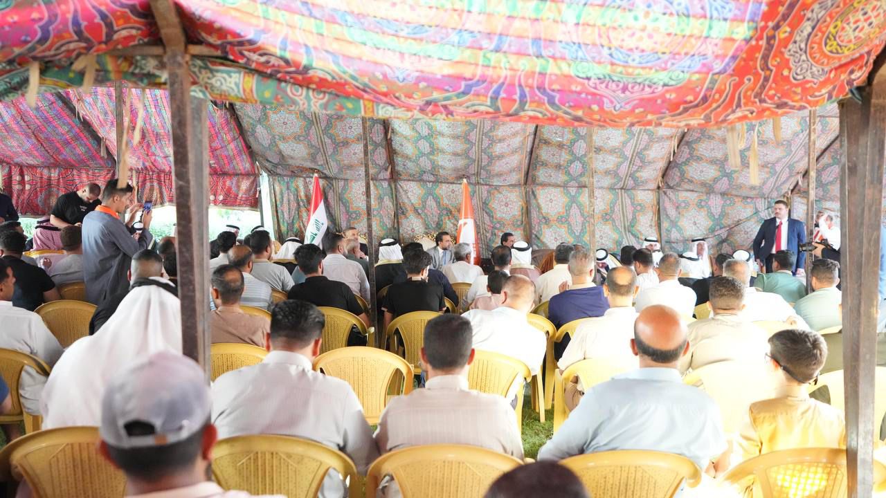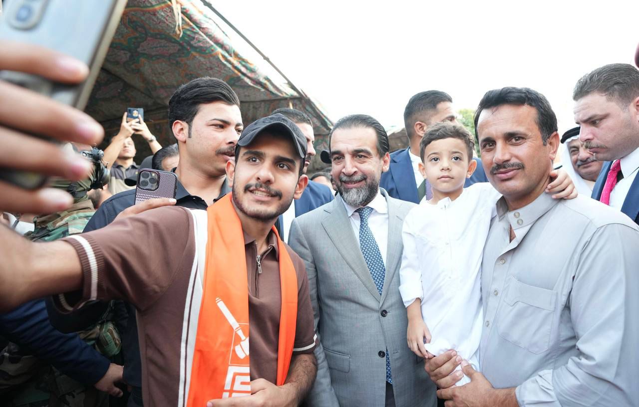 رئيس حزب تقدم الرئيس محمد الحلبوسي، يرافقه عدد من قيادات الحزب، يزور تجمّعاً في الطارمية لدعم مرشَّح الحزب محمد جاسم المشهداني.