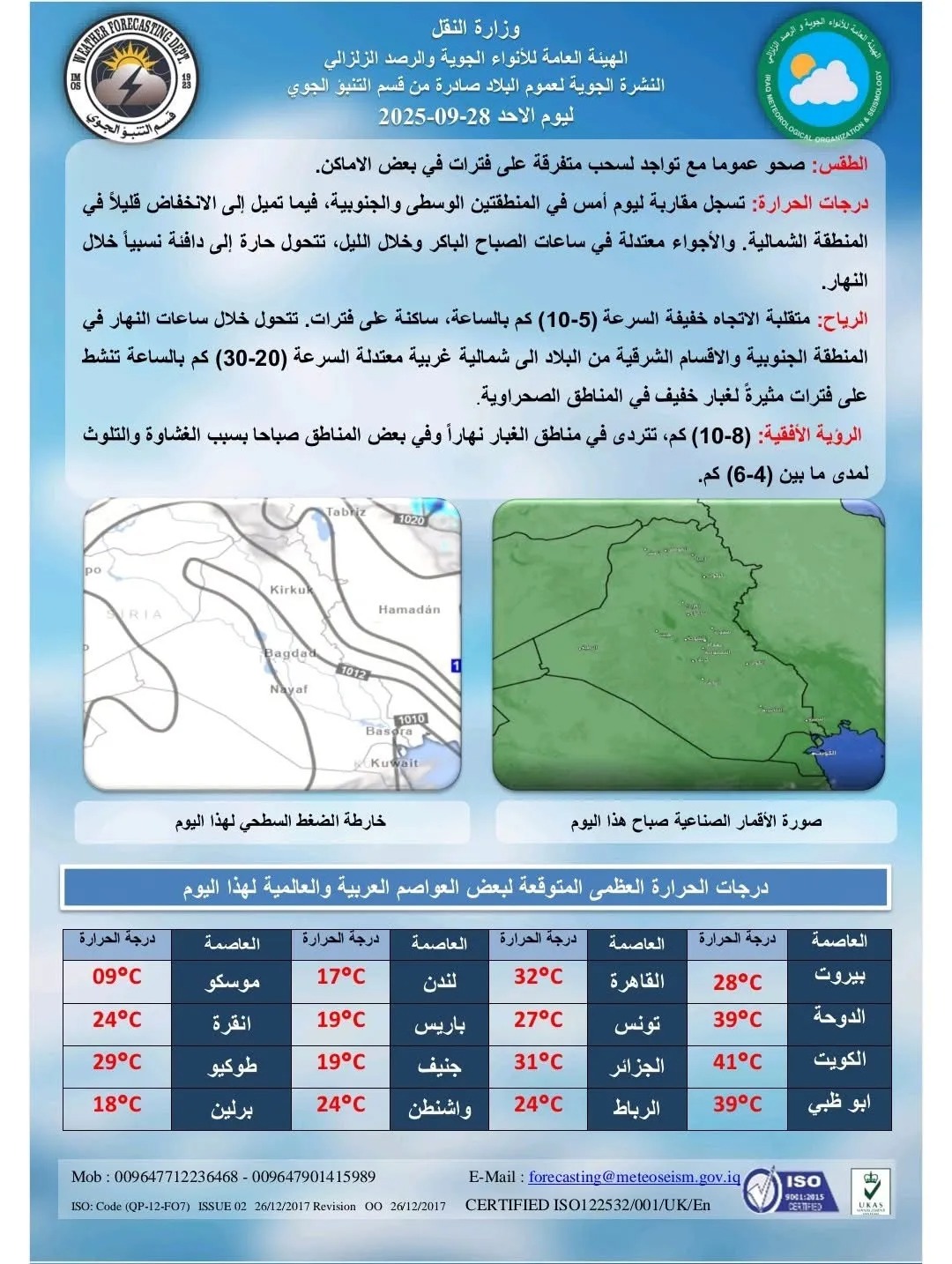 طقس العراق.. غبار وارتفاع بدرجات الحرارة خلال الأيام المقبلة قبل شهرين شارك طقس العراق.. غبار وارتفاع بدرجات الحرارة خلال الأيام المقبلة