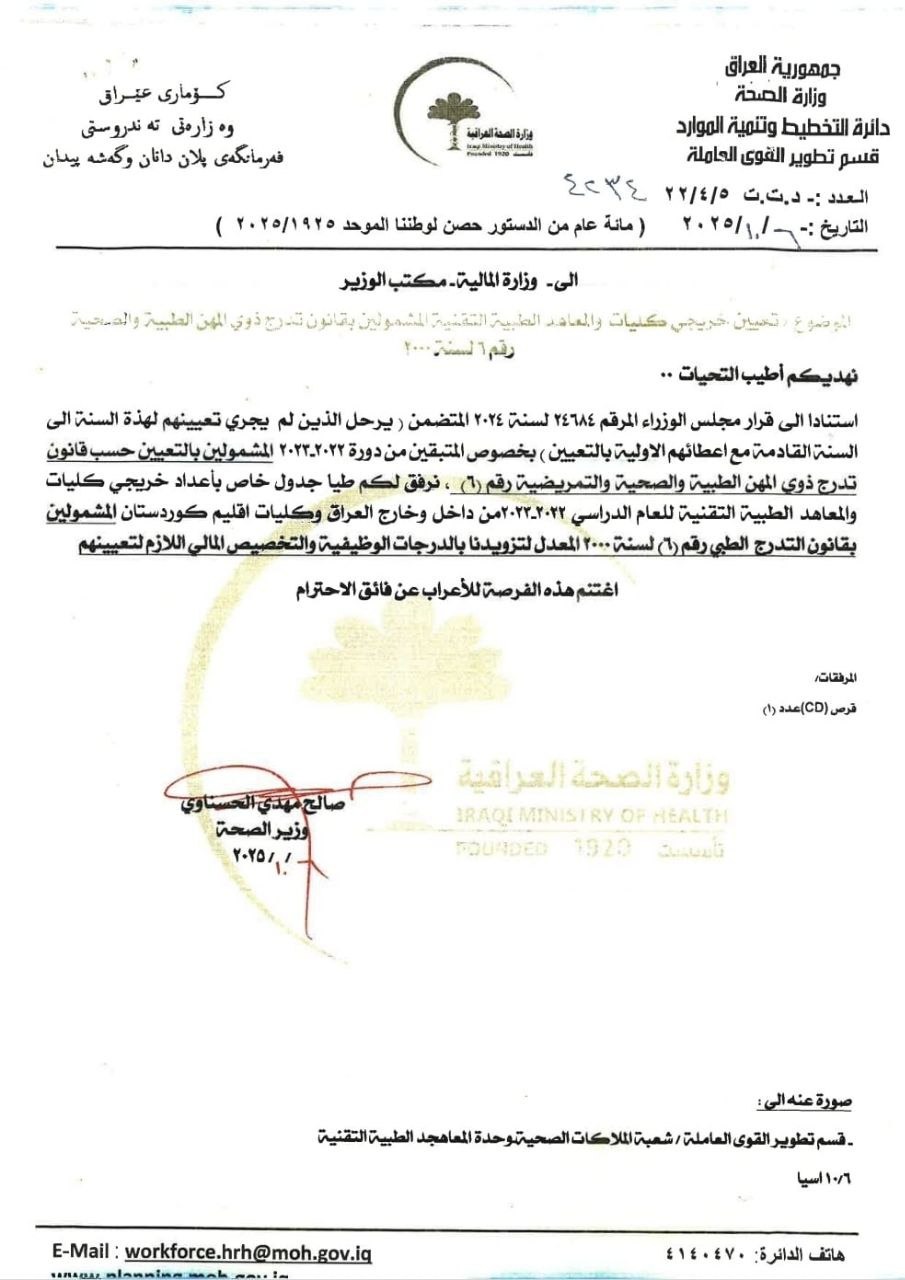 الصحة ترسل للمالية ومجلس الخدمة جداول تعيينات خريجي ذوي المهن الصحية لعام 2022- 2023 قبل شهرين شارك الصحة ترسل للمالية ومجلس الخدمة جداول تعيينات خريجي ذوي المهن الصحية لعام 2022- 2023