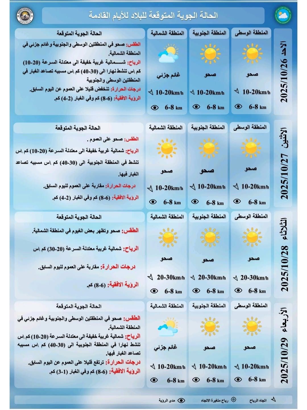 طقس العراق.. غبار وانخفاض درجات الحرارة خلال الأيام المقبلة