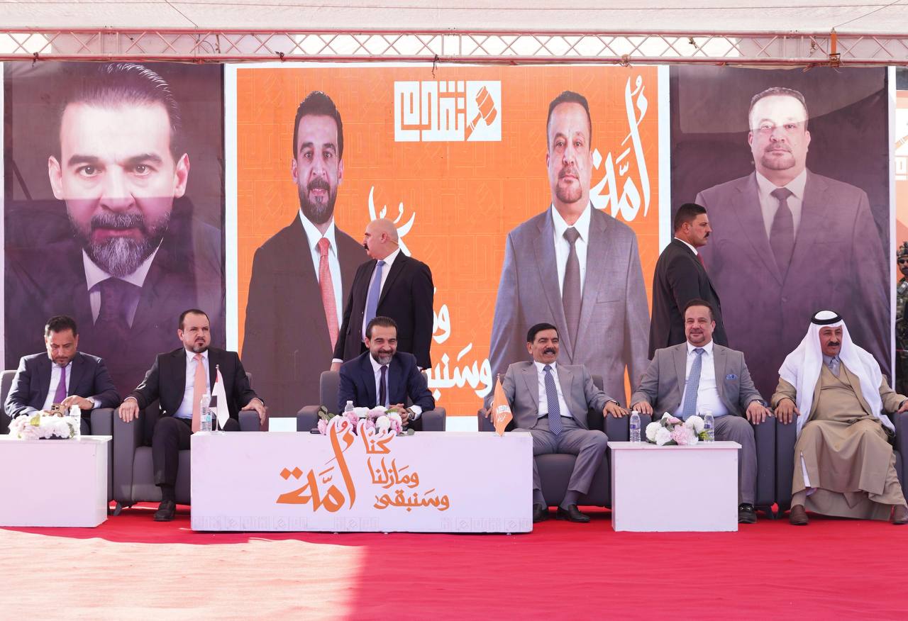 رئيس حزب تقدم الرئيس محمد الحلبوسي، يرافقه عدد من قيادات الحزب في محافظة صلاح الدين، يحضر تجمّعاً لدعم مرشَّح الحزب محمد جاسم الرومي في قضاء الشرقاط.