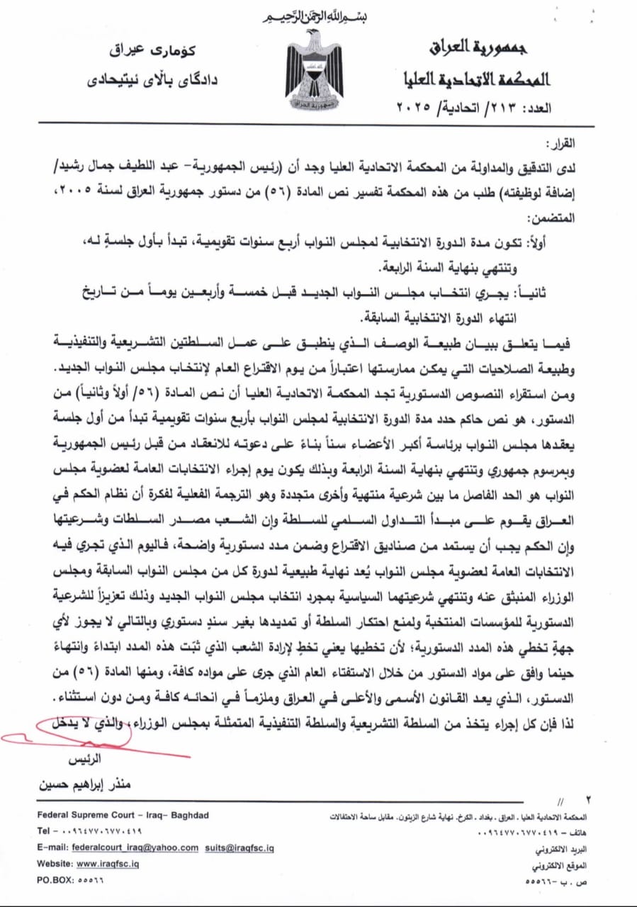 "لا يحق لها التعيين بالمناصب والإعفاء".. المحكمة الاتحادية تؤكد تحول صلاحية الحكومة إلى تصريف الأمور اليومية قبل 3 أشهر شارك "لا يحق لها التعيين بالمناصب والإعفاء".. المحكمة الاتحادية تؤكد تحول صلاحية الحكومة إلى تصريف الأمور اليومية