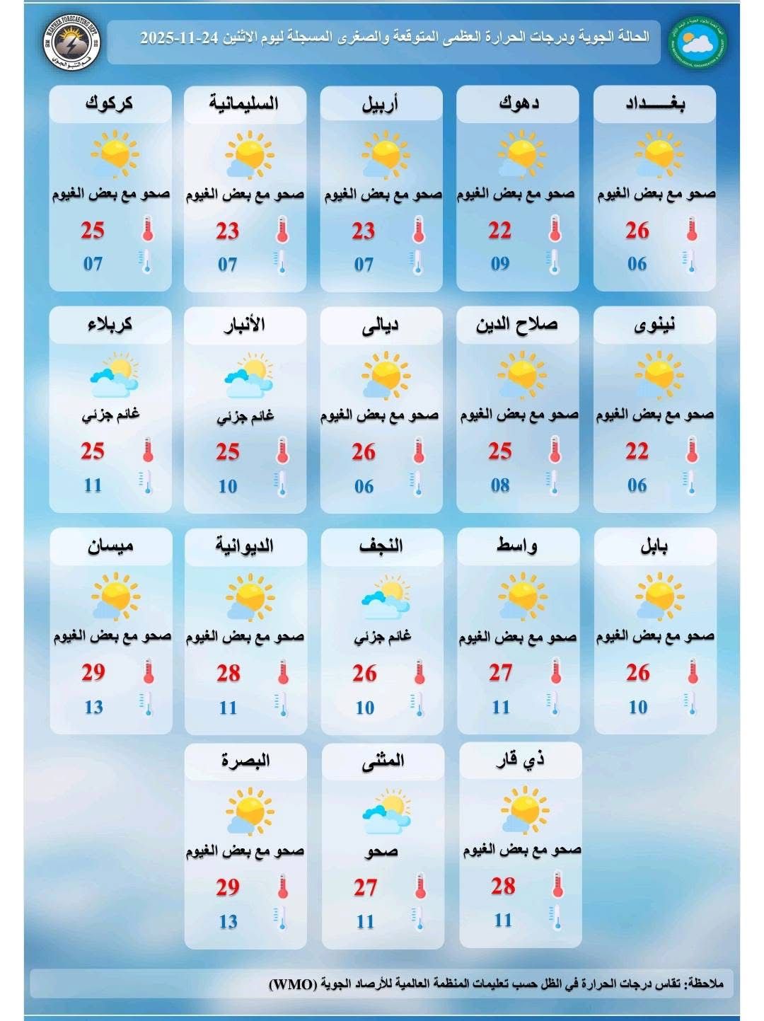 الوسومأمطارانخفاض بدرجات الحرارةدرجات الحرارةطقس العراق