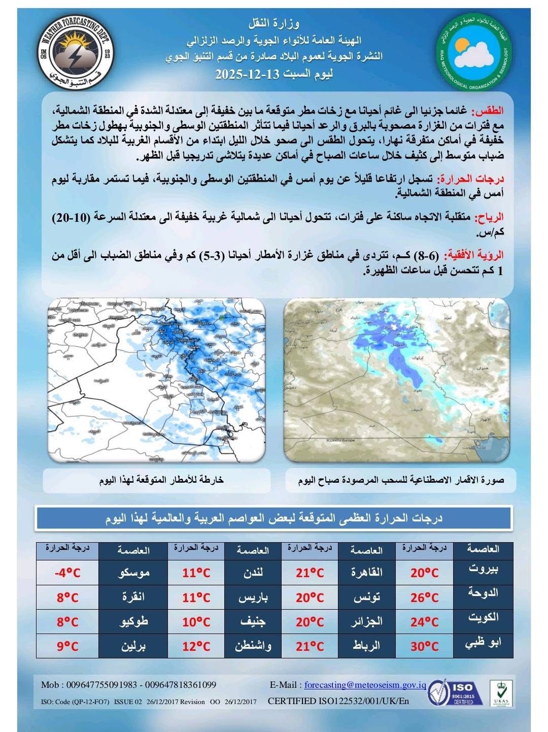 طقس العراق.. أمطار وضباب وانخفاض درجات الحرارة خلال الأيام المقبلة قبل يومين شارك طقس العراق.. أمطار وضباب وانخفاض درجات الحرارة خلال الأيام المقبلة