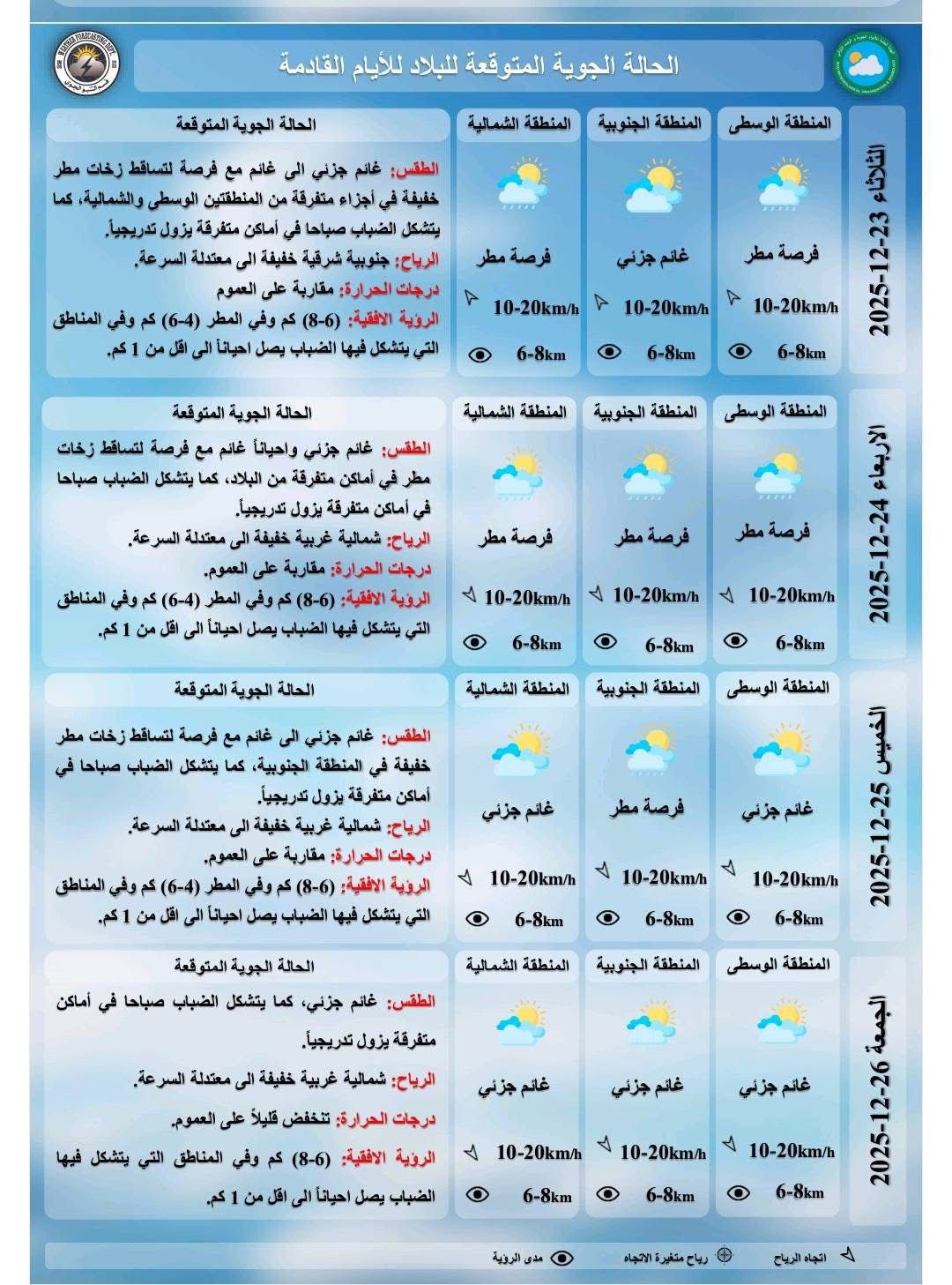 طقس العراق.. ضباب وفرصة لهطول أمطار خلال الأيام المقبلة