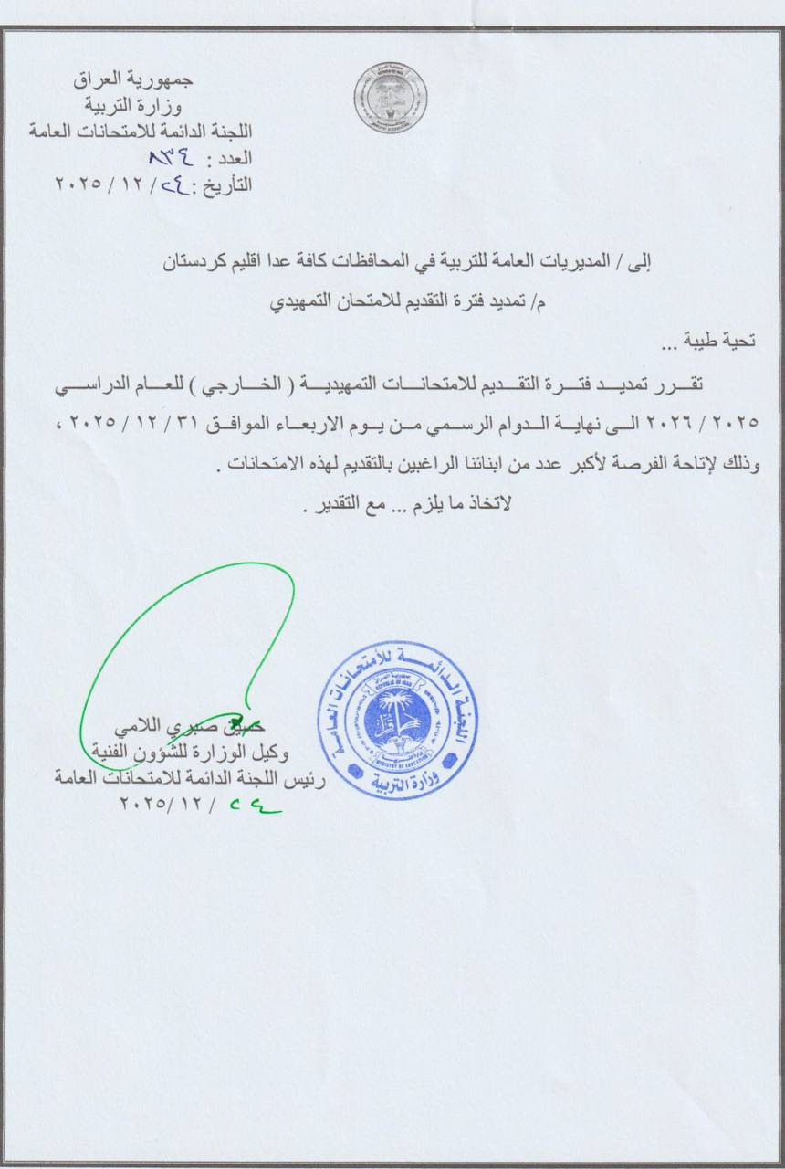 محلياتالتربية توافق على تمديد فترة التقديم للامتحانات التمهيدية (الخارجي) إلى نهاية العام الحالي قبل 3 ساعات 8 مشاهدات شارك وزارة التربية التربية توافق على تمديد فترة التقديم للامتحانات التمهيدية (الخارجي) إلى نهاية العام الحالي الوسومالتربيةالتقديمقد يهمك أيضا محليات الداخلية: إيقاف العمل في مديرية الأحوال المدنية والجوازات والإقامة حتى 4 كانون الثاني 2026 قبل 53 دقيقة 7 مشاهدات أقتصاد ارتفاع أسعار صرف الدولار مقابل الدينار العراقي مع الاغلاق قبل ساعتين 10 مشاهدات محليات اكتشاف أثري في العراق يوثق تعايشا دينيا فريدا قبل 15 قرنا قبل ساعتين 8 مشاهدات الاخبار العاجلة المجر لا تستبعد اندلاع حرب في أوروبا خلال عام 2026 قبل ساعتين 10 مشاهدات عربي ودولي روسيا تعتزم إنشاء محطة نووية على القمر لتوفير الطاقة لبرنامجها الفضائي قبل ساعتين 8 مشاهدات