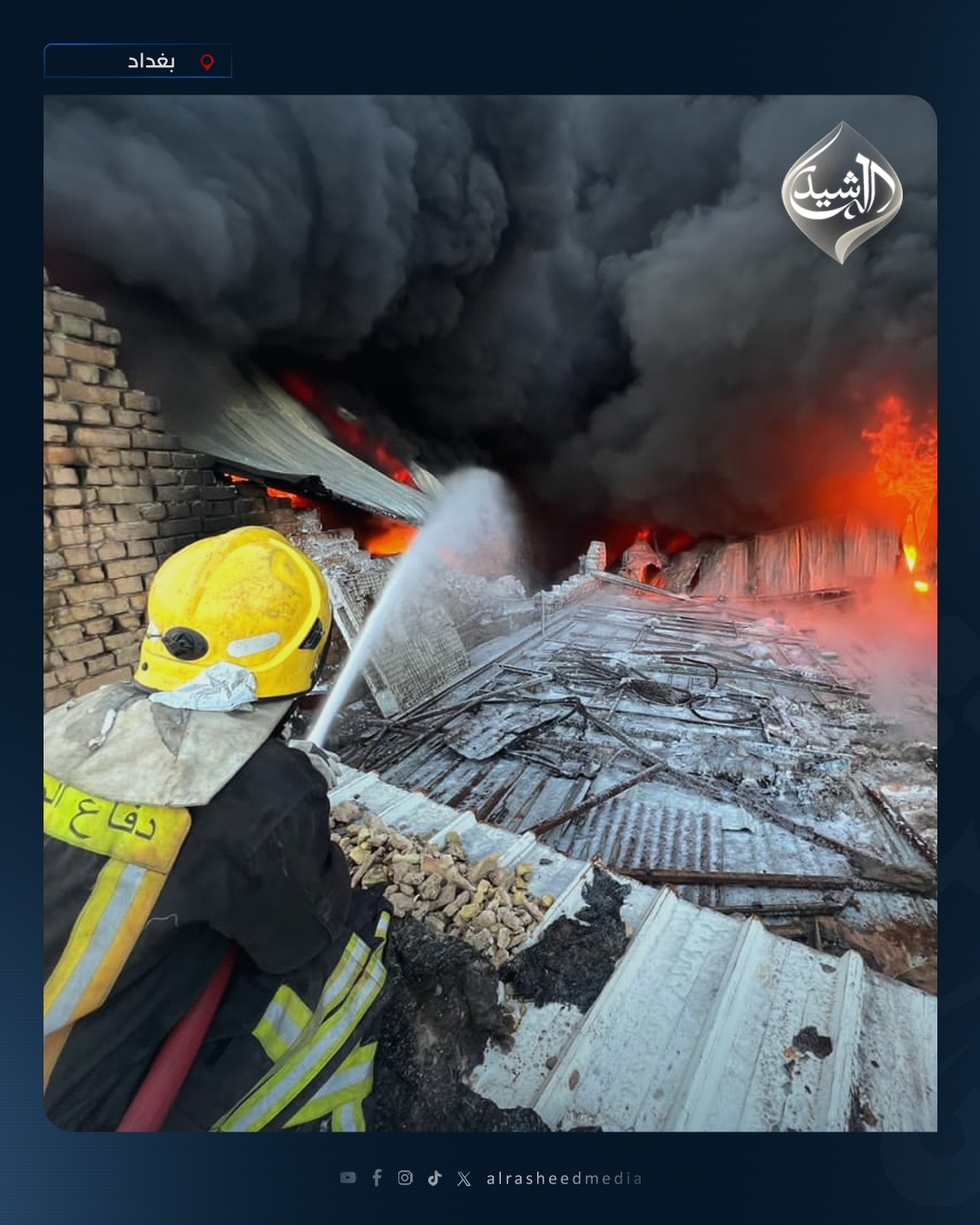 الدفاع المدني يخمد حريقاً في مخزنين وينقذ ثمانية مخازن مجاورة في الكاظمية ببغداد