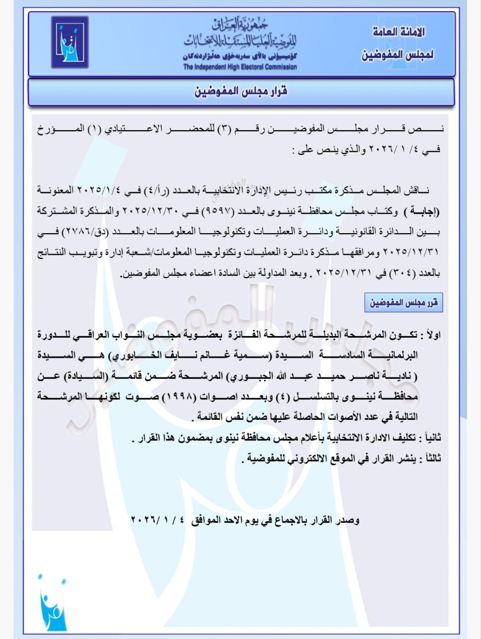 مفوضية الانتخابات تعلن بدلاء أعضاء مجالس المحافظات الفائزين بعضوية البرلمان