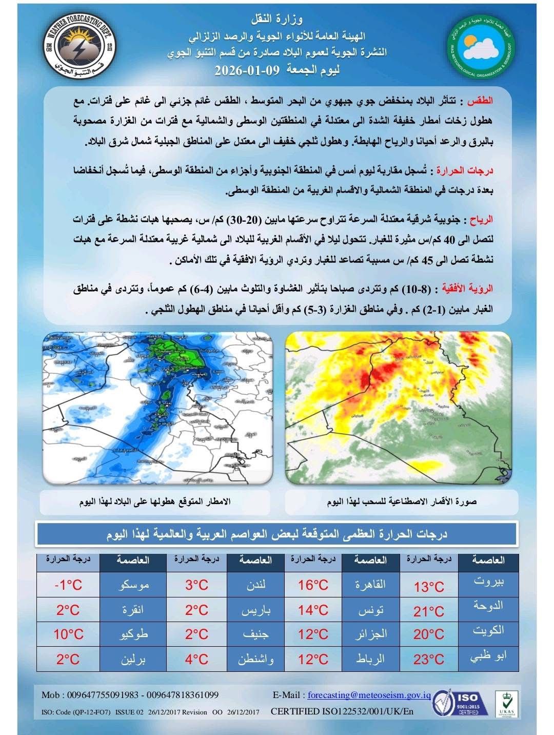 المنخفض الجوي يدخل أجواء العراق.. أمطار وانخفاض درجات الحرارة اعتباراً من اليوم