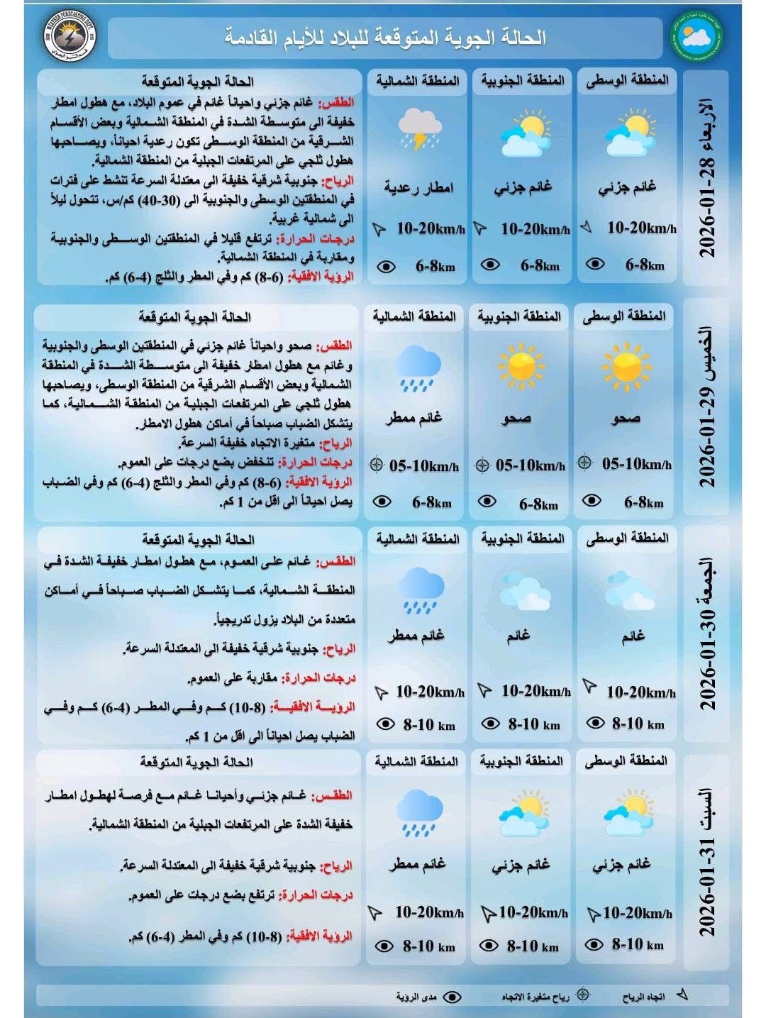 بدء تأثير المنخفض الجوي على العراق.. أمطار وثلوج وضباب خلال الأيام المقبلة قبل 3 ساعات شارك بدء تأثير المنخفض الجوي على العراق.. أمطار وثلوج وضباب خلال الأيام المقبلة