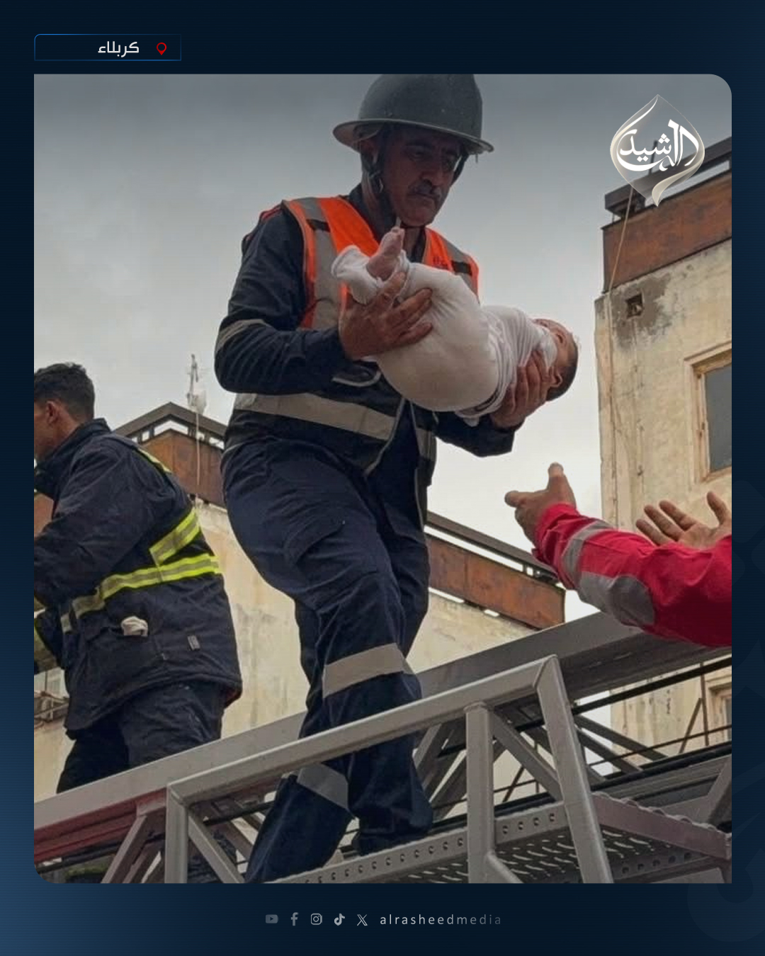 بالصور.. الدفاع المدني في كربلاء يُخلي عوائل بعد انهيار جزئي لشقق سكنية بفعل الأمطار