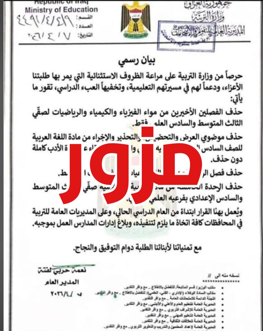 محلياتوزارة التربية تنفي صحة كتاب يخص تقليص المناهج الدراسية قبل ساعتين 34 مشاهدات شارك وزارة التربية: الدخول الشامل من صلاحية مجلس الوزراء وهيئة الرأي الوسومالمناهج الدراسيةصحةكتابوزارة التربيةقد يهمك أيضا محليات وزارة النفط: معامل الغاز في بغداد والمحافظات تعمل بشكل مستمر قبل دقيقتان أمن كتائب حزب الله تقرر اطلاق سراح الصحفية الامريكية “شيلي كيتلسون” قبل 41 دقيقة 22 مشاهدات سياسة “الرشيد” تنشر نص قرارات مجلس الوزراء في جلسة اليوم قبل 45 دقيقة 7 مشاهدات عربي ودولي بزشكيان يعلن تطوع أكثر من 14 مليون إيراني للدفاع عن البلاد قبل 51 دقيقة 5 مشاهدات عربي ودولي مجلس الأمن يخفق في إقرار مشروع قرار بحريني بشأن فتح مضيق هرمز قبل 52 دقيقة 6 مشاهدات