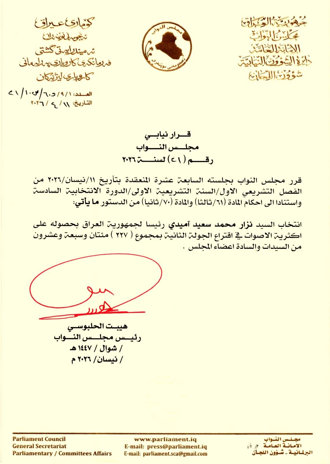 سياسة“الرشيد” تنشر القرار النيابي الخاص بانتخاب نزار آميدي رئيسًا الجمهورية قبل ساعتين 14 مشاهدات شارك "الرشيد" تنشر القرار النيابي الخاص بانتخاب نزار آميدي رئيسًا الجمهورية الوسومالجمهوريةقد يهمك أيضا عربي ودولي حصيلة غير نهائية.. الصحة اللبنانية: 97 شهيدًا و133 مصابًا بغارات إسرائيلية على البلاد اليوم قبل 23 دقيقة 8 مشاهدات عربي ودولي القيادة المركزية الأميركية: بدأنا بإنشاء ممر جديد في مضيق هرمز لتعزيز حرية التجارة قبل 56 دقيقة 10 مشاهدات عربي ودولي القيادة المركزية الأميركية: بدأنا مهمة إزالة الألغام في مضيق هرمز قبل ساعة واحدة 9 مشاهدات عربي ودولي الولايات المتحدة تسحب البطاقات الخضراء من أقارب مسؤولين إيرانيين قبل ساعة واحدة 9 مشاهدات عربي ودولي الرئيس الفرنسي يؤكد لنظيره الإيراني ضرورة ضمان حرية الملاحة في مضيق هرمز قبل ساعتين 11 مشاهدات