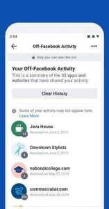 وتهدف خاصية “النشاط خارج فيسبوك” إلى رؤية ملخص عن جميع التطبيقات والمواقع التي ترسل لفيسبوك معلومات عن مستخدميها، بغرض استغلالها في الإعلانات المعروضة على الموقع الاجتماعي الشهير.