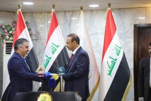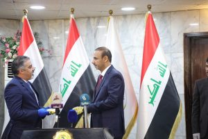 ووقال المكتب الاعلامي للوزارة، في بيان تلقته الرشيد، انه “جرى تسليم المهام خلال مؤتمر صحفي عقد في الوزارة اليوم، إذ اكد الركابي ان تسليم مهام الوزارة يدل على التداول السلمي للسلطة في بلد نشأت فيه الديمقراطية”، مبيناً، ان “المرحلة المقبلة تتطلب اكمال الواجبات وانجاز ما بدأه الوزير السابق وخاصة ان وزارة العمل من الوزارات المهمة التي تعنى بشرائح عديدة تحتاج الى رعاية واهتمام خاص”.