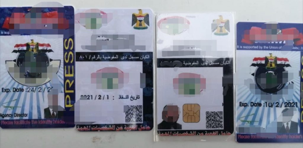 وقالت القيادة، في بيان تلقته الرشيد، ان “قوة من قيادة عمليات بغداد، تمكنت من إلقاء القبض على متهم بعد استيقافه لحمله مجموعة من (الباجات)صحفية وعشائرية مختلفة، وبعد التحقيق الاولي معه اعترف بتنظيم هذه الباجات في مكاتب الطباعة في شارع السعدون ببغداد، بهدف تسليمها الى اشخاص للاستفادة منها في تجاوز السيطرات ومفارز المرور خلال ساعات حظر التجول الوقائي، وتجاوز التفتيش الدقيق”.