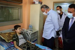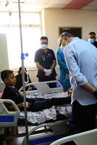 واضاف، ان “رئيس مجلس الوزراء‎ بدء جولته بزيارة عدد من الأطفال الراقدين في مدينة الطب واطلع على مستوى الخدمات الصحية المقدّمة، وتوجّه بعد ذلك الى مركز الشفاء التخصصي للأزمات وتفقد عدداً من الراقدين فيه، متمنيا لهم الشفاء العاجل”.