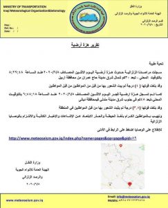 وقالت الوزارة، في بيان تلقته الرشيد، ان “المراصد الزلزالية لوزارة النقل العراقية في الهيئة العامة للانواء الجوية، سجلت صباح اليوم الإثنين الموافق 8/6 /2020، حدوث هزتين أرضيتين، تبعد الأولى (30) كم شمال شرق مدينة حاج عمران في محافظة اربيل والاخرى جنوب شرق مندلي بمحافظة ديالى”.