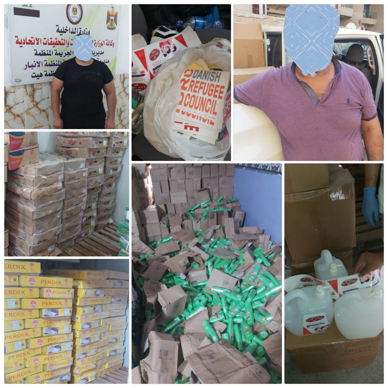 واضافت، كما “تم ضبط ثلاثة منازل في بغداد بداخلها مواد منتهية الصلاحية من معقمات وجل تعقيم ومواد تجميل وضع عليها تاريخ جديد عليها، فضلاً عن ضبط كميات كبيرة من المواد الكحولية التي تستخدم في مواد التعقيم وإلقاء القبض على صاحب المواد، تم اتخاذ الإجراءات الأصولية بحقه”.