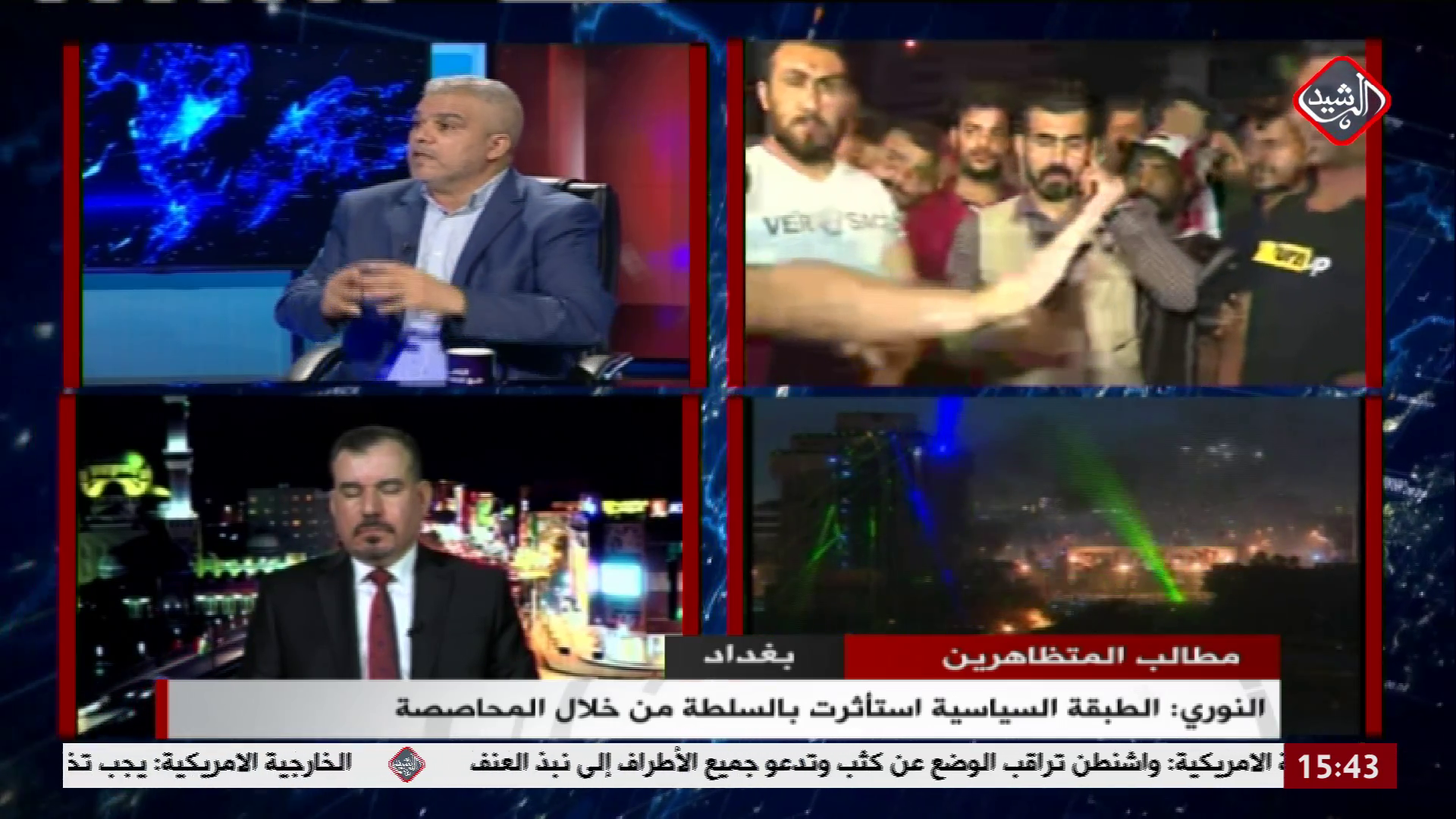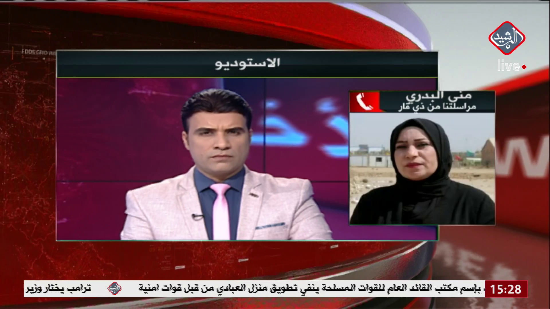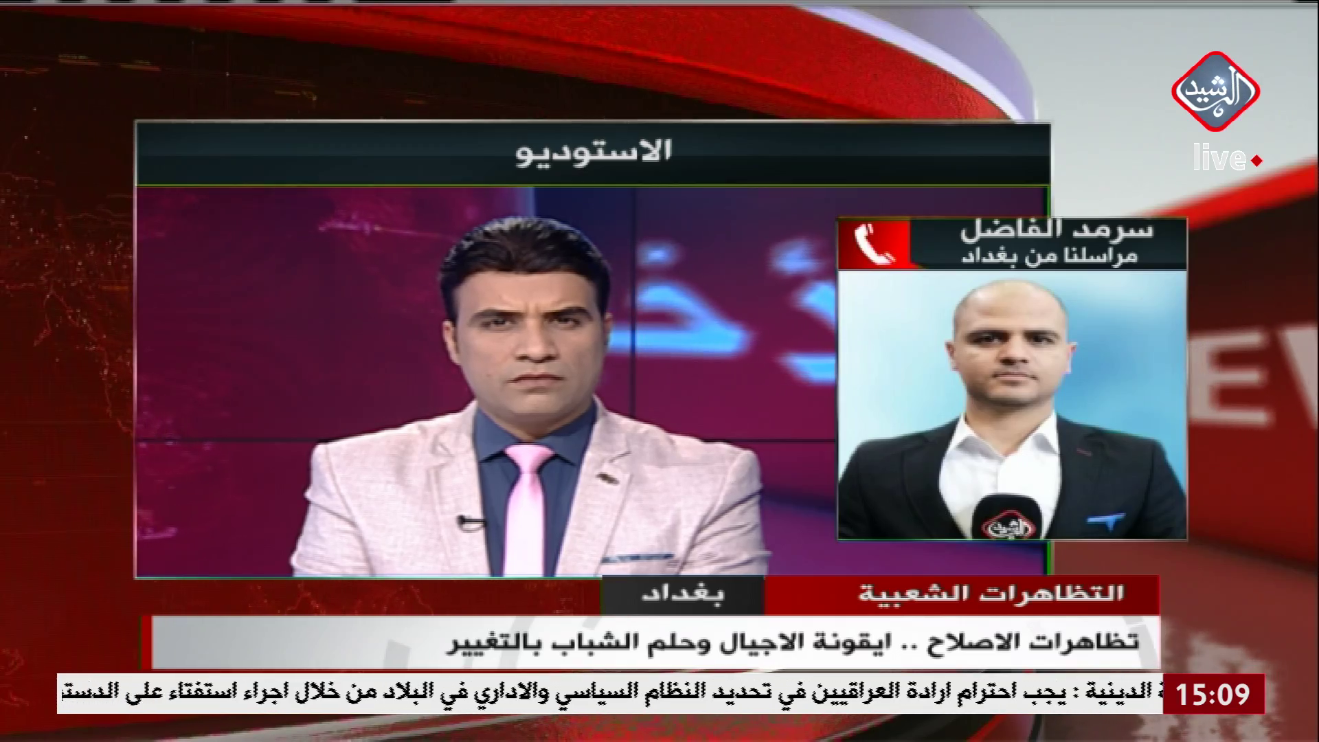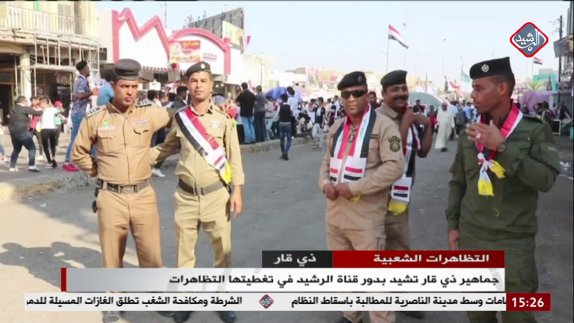 جماهير ذي قار تشيد بدور قناة الرشيد في تغطيتها التظاهرات تقرير منى البدري