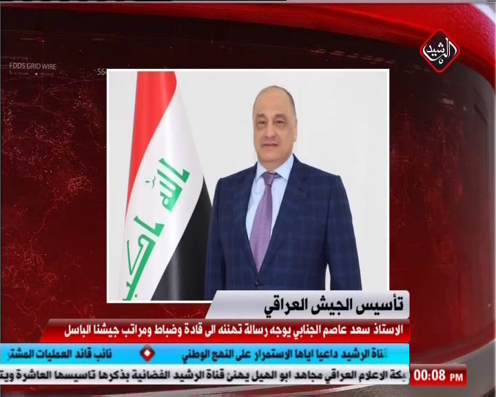 الاستاذ سعد عاصم الجنابي يوجه رسالة تهنئه الى قادة وضباط ومراتب جيشنا الباسل