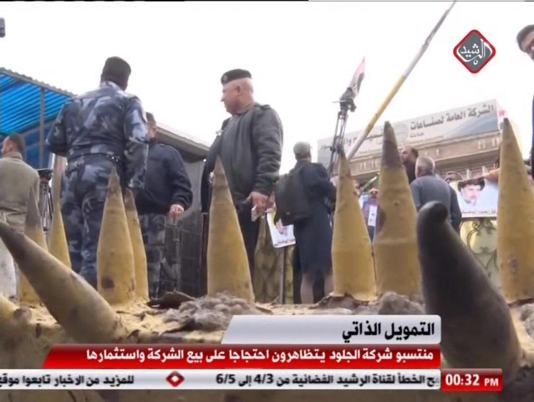 منتسبو شركة الجلود يتظاهرون احتجاجا على بيع الشركة واستثمارها