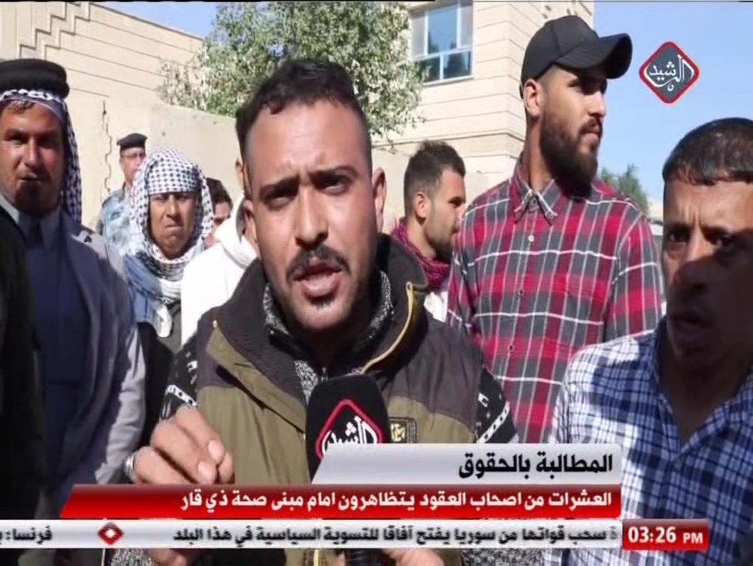 العشرات من اصحاب العقود يتظاهرون امام مبنى صحة ذي قار