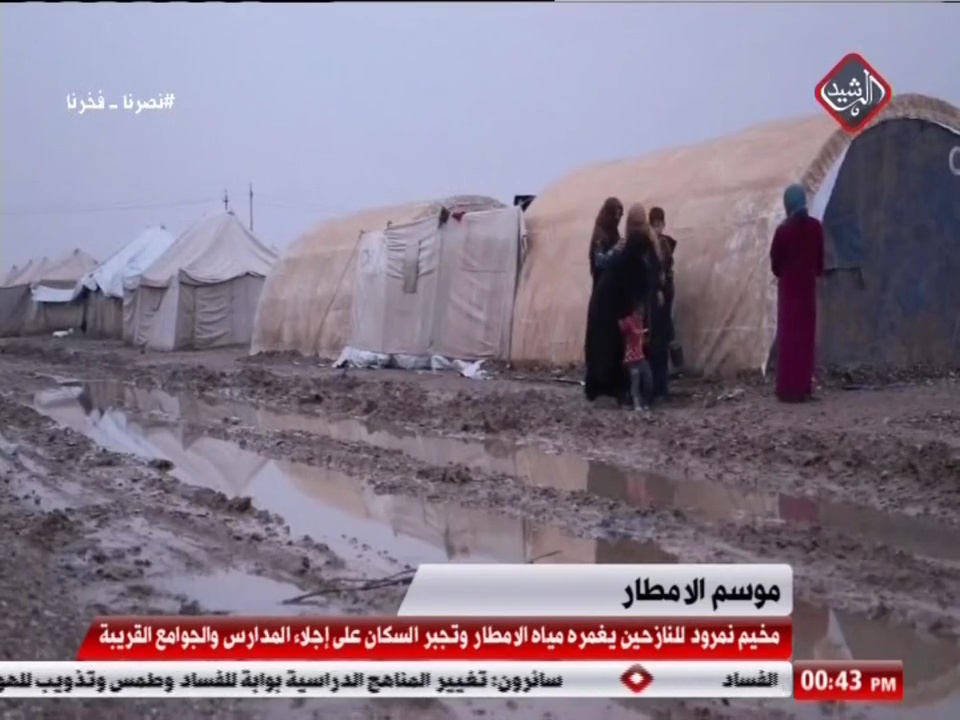 مخيم نمرود للنازحين يغمره مياه الامطار وتجبر السكان على إجلاء المدارس والجوامع القريبة