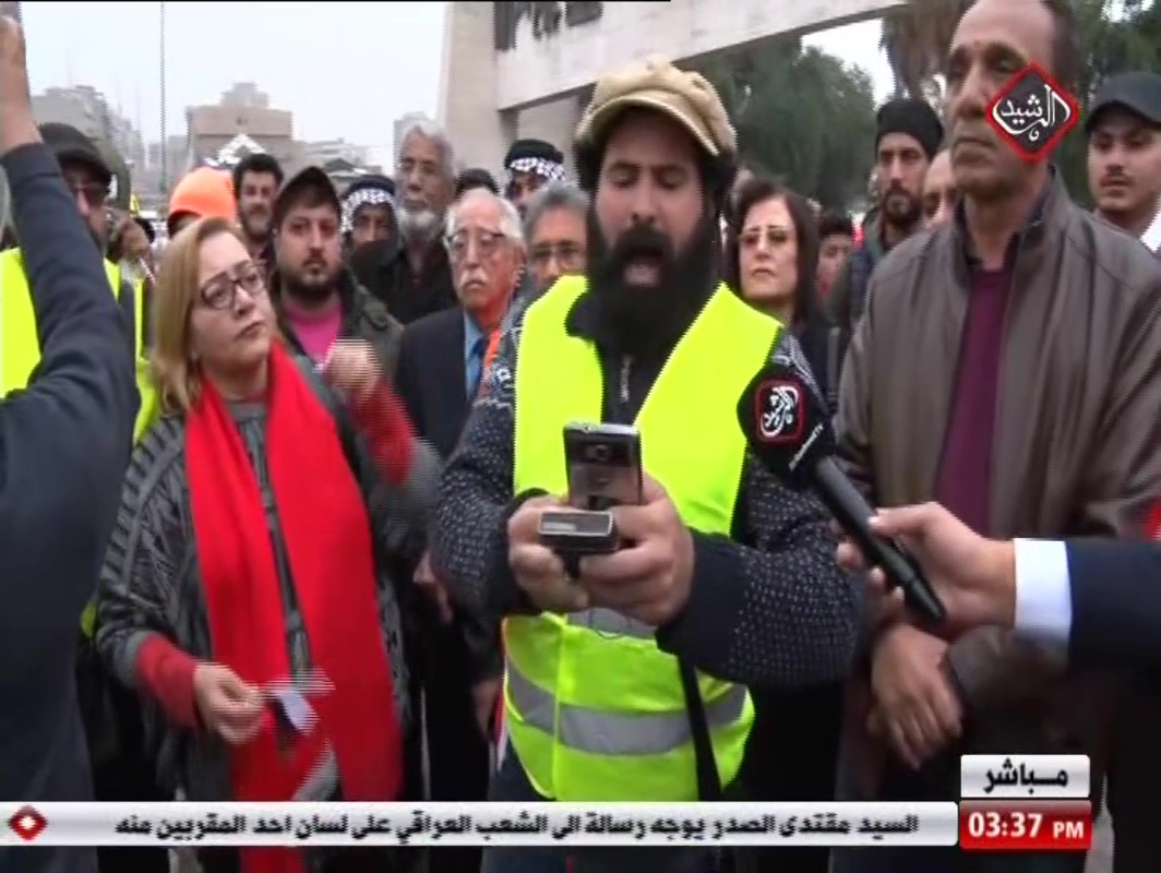 تغطية قناة الرشيد في ساحة التحرير لمظاهرة التضامن مع أهل البصرة 2018/12/6
