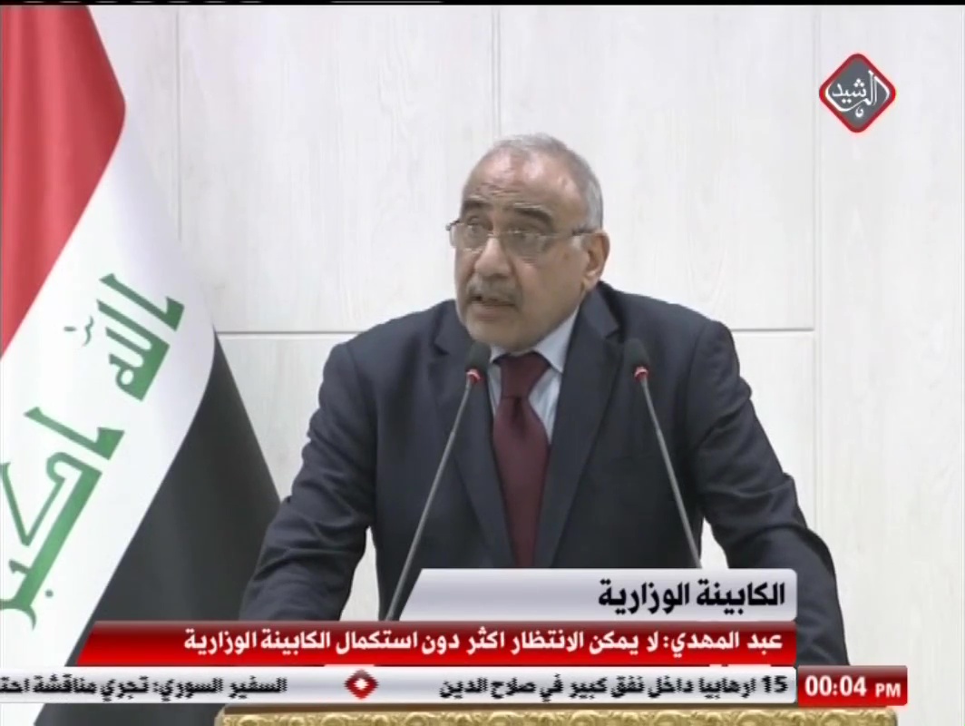 عبد المهدي: لا يمكن الانتظار اكثر دون استكمال الكابينة الوزارية