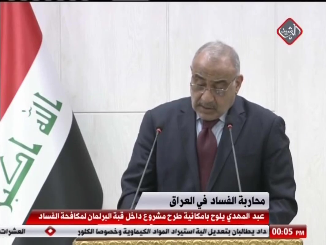 عبد المهدي يلوح بامكانية طرح مشروع داخل قبة البرلمان لمكافحة الفساد