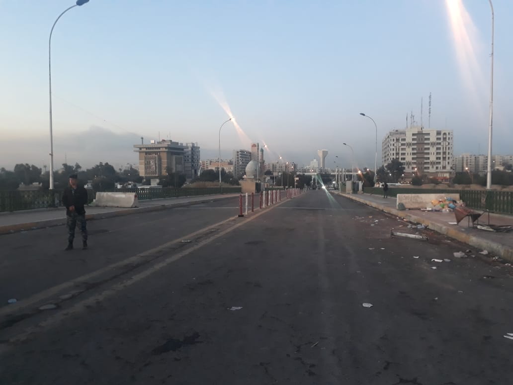 اعادة فتح جسر السنك بعد انسحاب المتظاهرين باتجاه ساحة التحرير وسط بغداد
