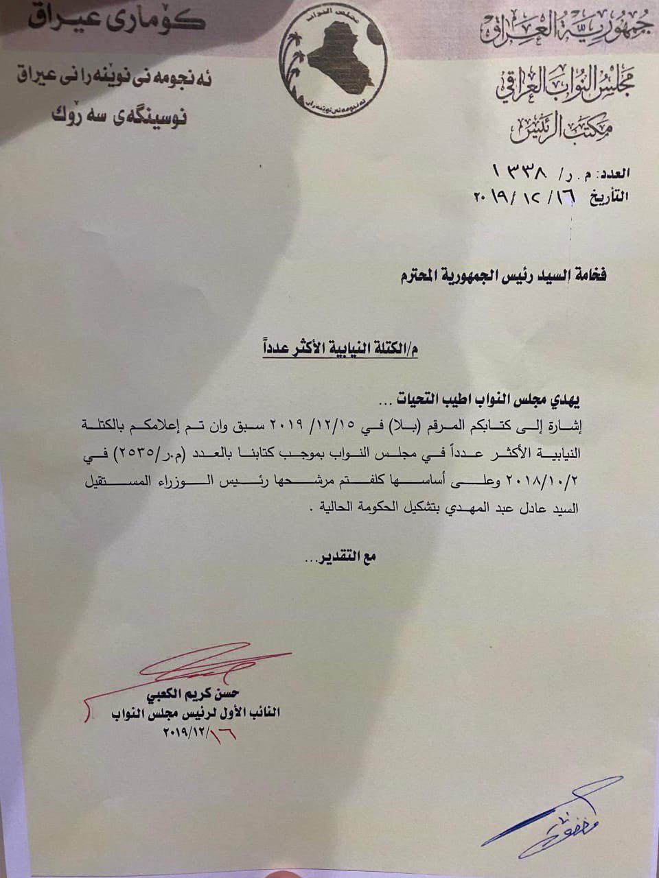 بالوثيقة .. البرلمان يرد على طلب رئيس الجمهورية بشأن تسمية الكتلة الاكبر