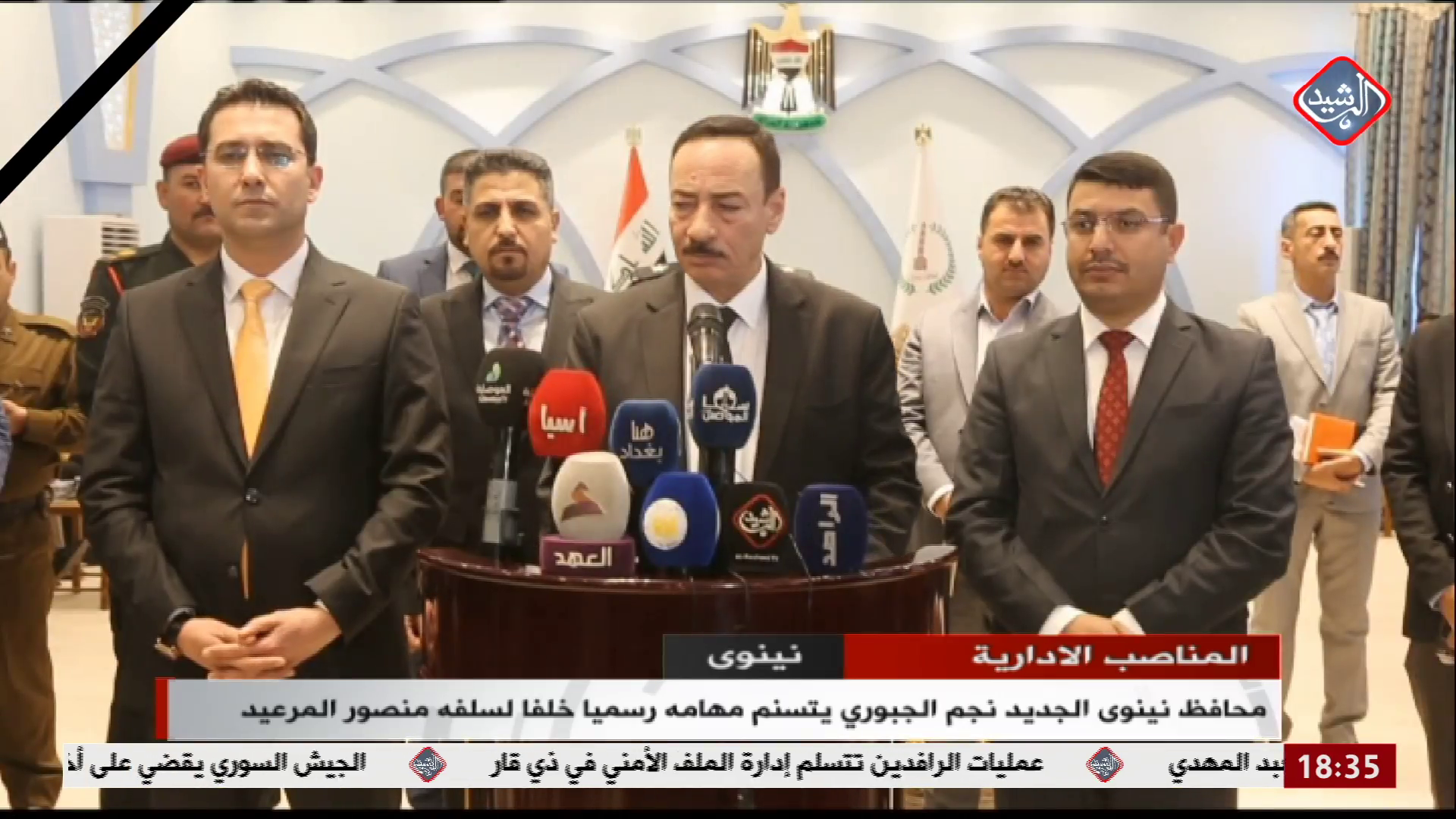 محافظ نينوى الجديد نجم الجبوري يتسنم مهامه رسميا خلفا لسلفه منصور المرعيد