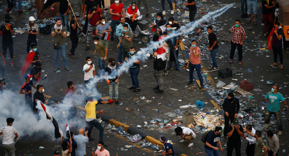 اطلاق قنابل الغاز والرصاص الحي لتفريق المتظاهرين في قضاء الرفاعي شمال الناصرية