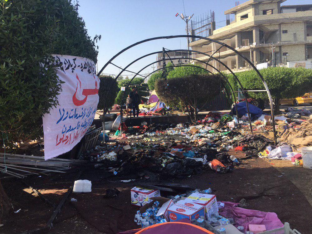 قوات مكافحة الشغب قامت باحراق خيم المعتصمين في ساحة التربية