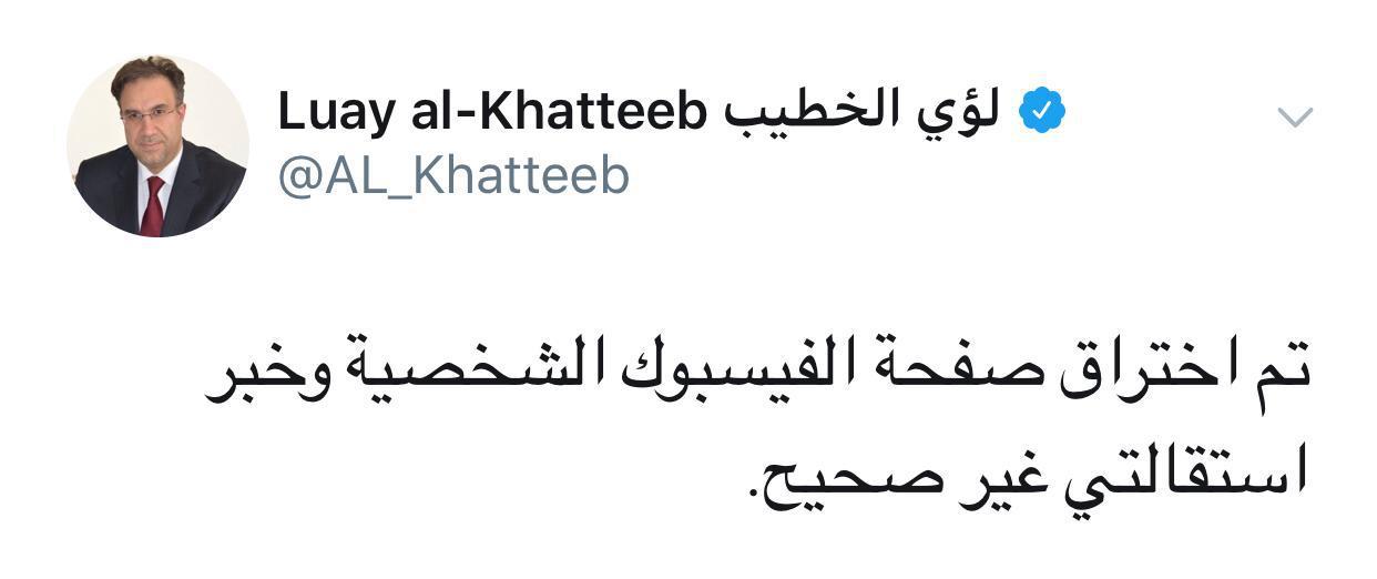 وزير الكهرباء ينفي تقديم استقالته ويؤكد ان صفحته على الفيسبوك قد تعرضت للتهكير