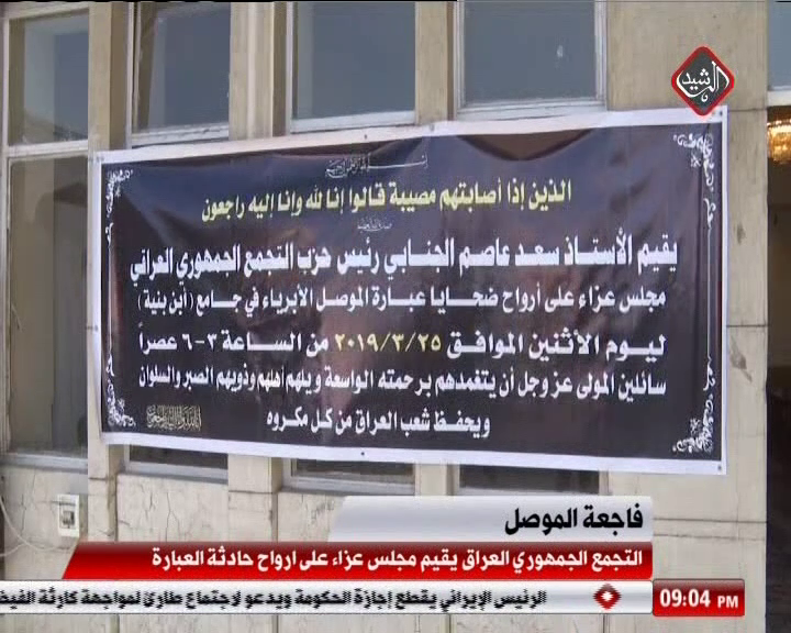 الاستاذ سعد عاصم الجنابي يقيم مجلس عزاء على ارواح ضحايا عبارة الموصل