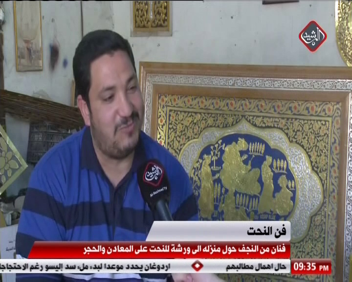 فنان من النجف حول منزله الى ورشة للنحت على المعادن والحجر