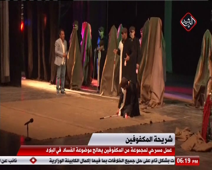 عمل مسرحي لمجموعة من المكفوفين يعالج موضوعة الفساد في البلاد