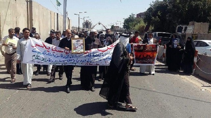 العشرات من ذوي ضحايا سبايكر يتظاهرون امام المنطقة الخضراء