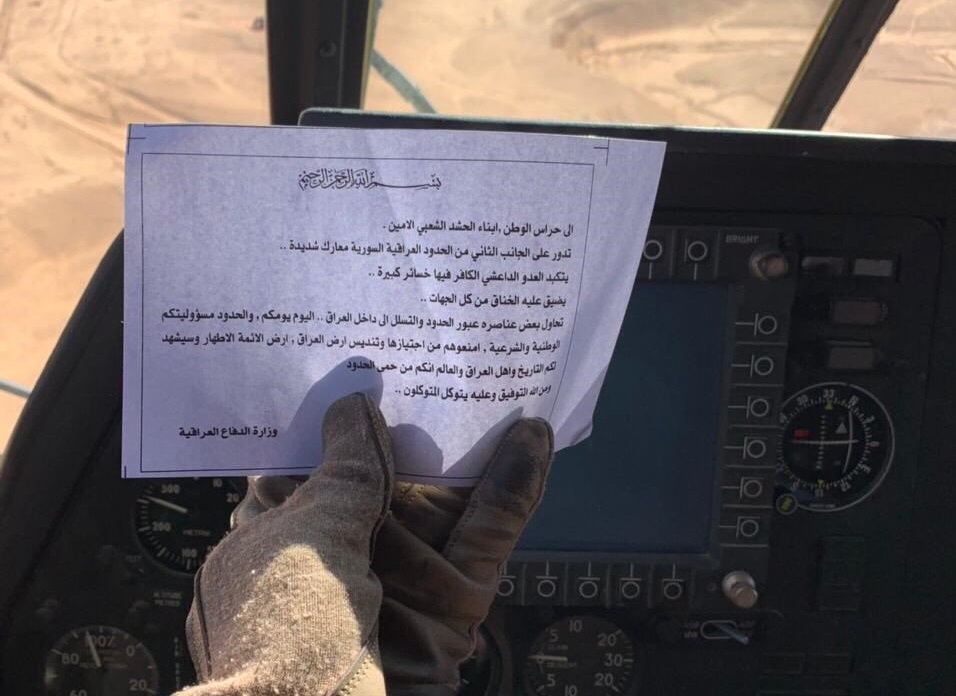 وزارة الدفاع تلقي منشورات على الحدود مع سوريا تدعو الحشد لحماية العراق