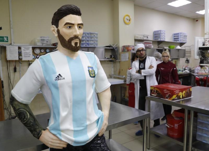 روسيا تصنع تمثالا من الشكولاتة بحجم ميسي احتفالا بعيد ميلاده